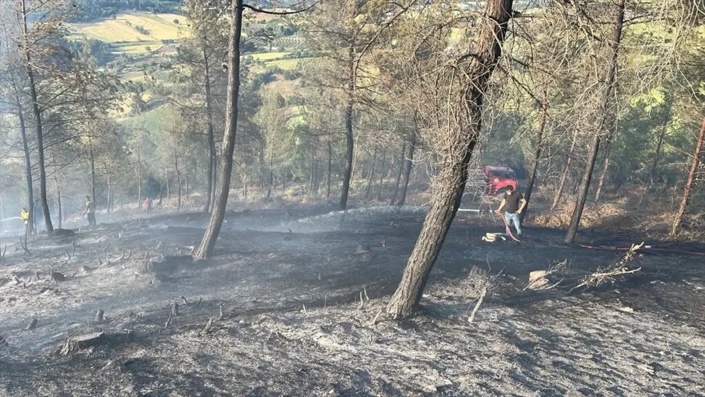 Dursunbey ilçesi Adaören Mahallesi’ndeki ormanlık alanda şimdi belirlenemeyen nedenle yangın çıktı.